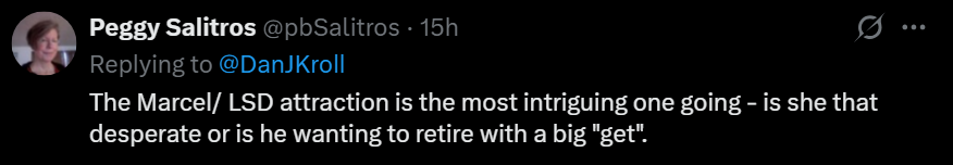 Piggybacking off of the previous comment, Peggy Salitros noted that the Marcel/LSD (that’s Leslie/Sherry/Dana) situationship is weirdly fascinating!